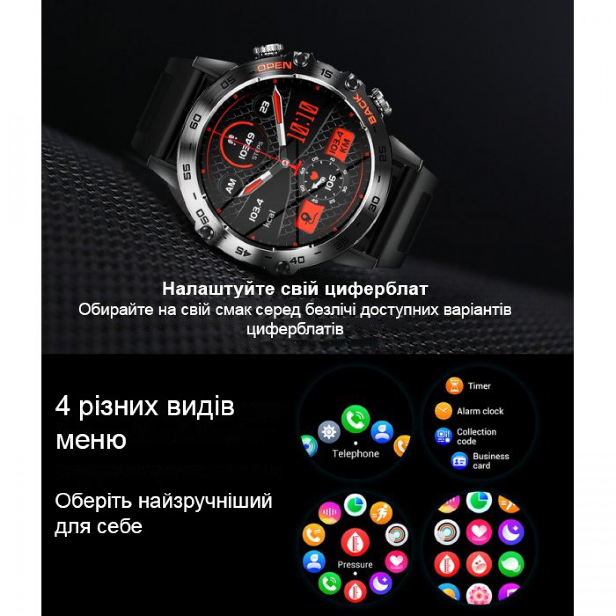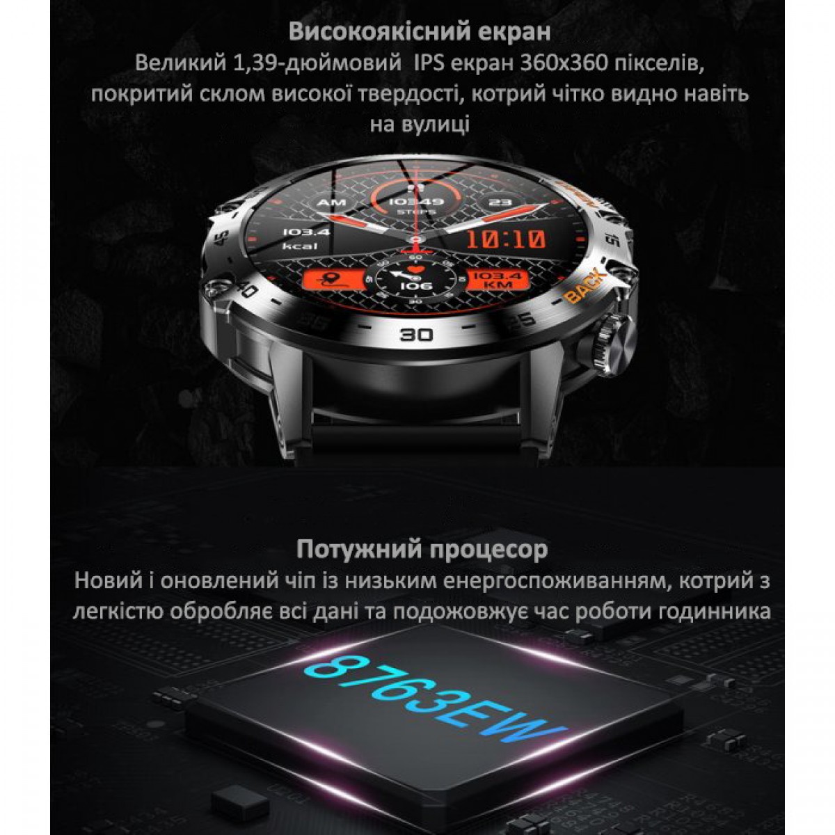 | Особливості | Вимірювання пульсу/тиску/кисню в крові; режим спортивних ігор; режим бігу та тренажерного залу; розширений фітнес – трекер; функція "Розумний сон+"; антилост; режим нагадувань; дистанційне керування камерою; будильник; захист від бризок та пилу; секундомір; процесор нового покоління; керування програвачем телефону; понад 100 дисплеїв на вибір |