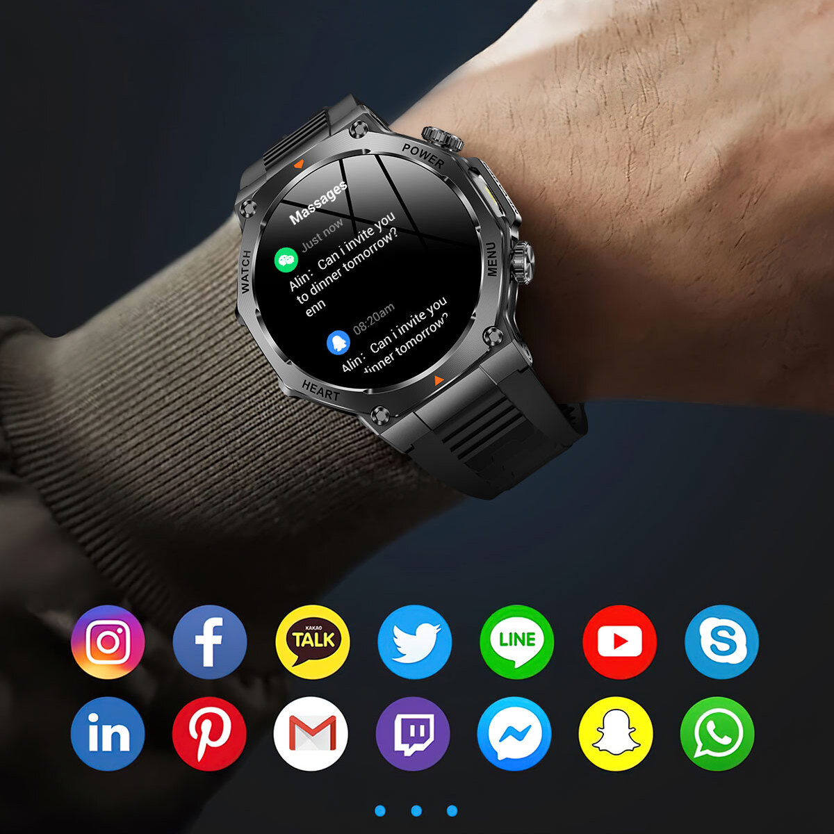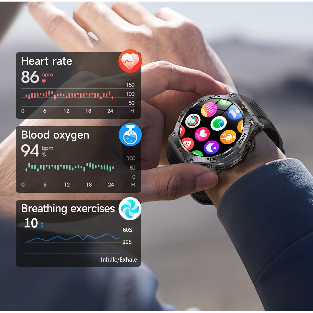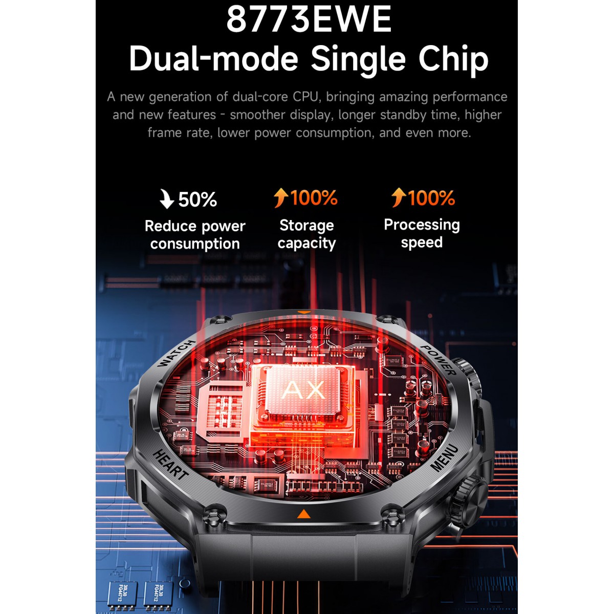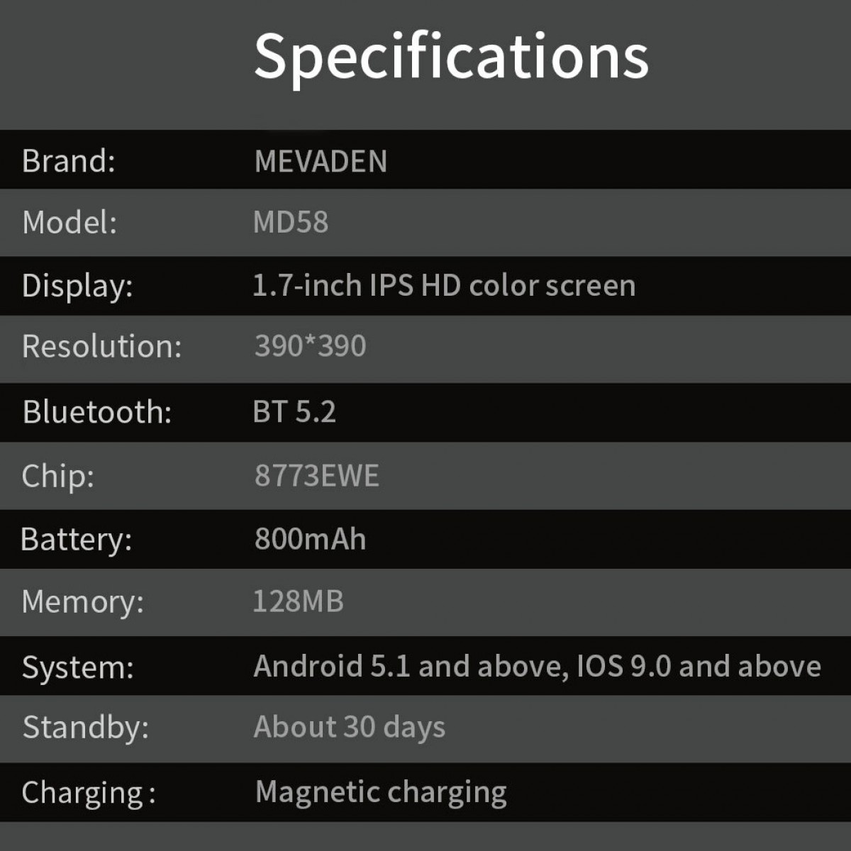 | Особливості | Вимірювання пульсу/кисню в крові; 100+ спортивних режимів та тренувань; Стальний корпус; Функція "Розумний сон+"; Режим нагадувань; Будильник, Секундомір, Ліхтарик; Голосовий помічник; Керування програвачем телефону; Понад 100 дисплеїв на вибір; Нагадування про дзвінки та повідомлення через Bluetooth; Дихальні вправи, калорії, відстань, сходинки, тривалість тренування; Погода. |