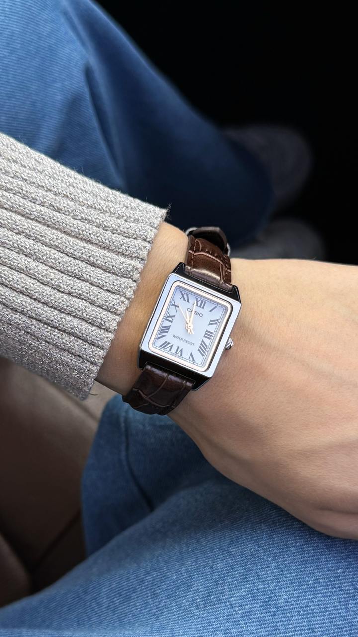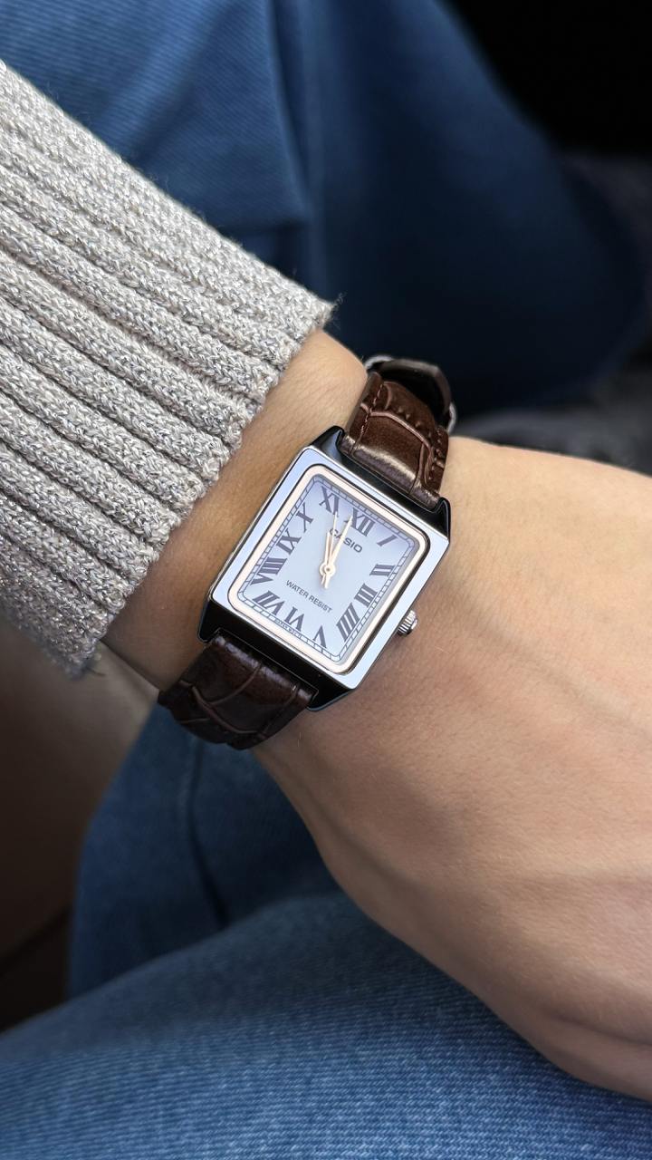Представляємо годинник Casio LTP-V007L-7B2 — стильний аксесуар для сучасної жінки. Цей класичний годинник виконаний у елегантному дизайні з круглим корпусом з високоякісної сталі кольору коричневого металік, що підкреслює його вишуканість. Він має мінеральне скло, що забезпечує надійний захист від подряпин. Годинник оснащений кварцовим механізмом і стрілочним циферблатом з римськими цифрами, що надає йому особливого шарму та легкості в читанні часу. М'який шкіряний ремінець сріблястого кольору забезпечує комфорт при носінні та хороший вигляд на зап'ясті. З водонепроникністю до 30 метрів Casio LTP-V007L-7B2 підійде для повсякденного використання, а гарантований термін служби в 24 місяці додає впевненості у покупці. Цей годинник стане чудовим вибором для тих, хто цінує якість, стиль та надійність.