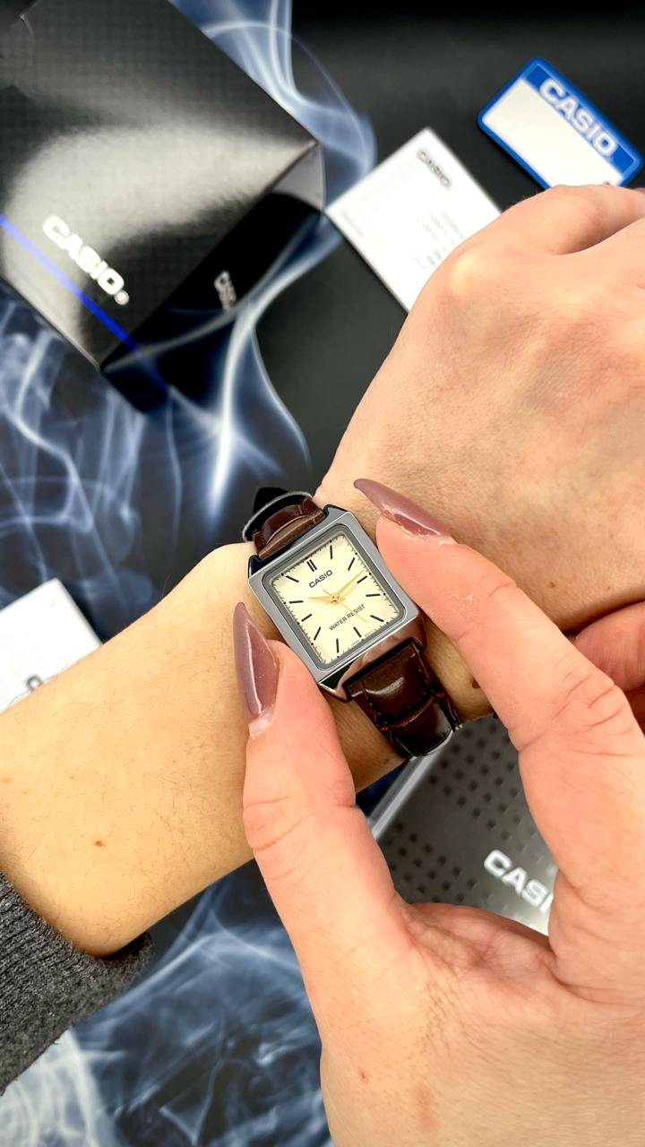 Представляємо годинник Casio LTP-V007L-9E - втілення класичного стилю та елегантності для сучасної жінки. Цей стильний аксесуар має квадратний сріблястий корпус з латуні, діаметром 34 мм, який поєднується з якісним коричневим шкіряним ремінцем, що додає йому витонченості. Годинник обладнаний мінеральним склом, що забезпечує високу стійкість до подряпин. Завдяки водонепроникності до 30 м, ви можете не хвилюватися про дрібні неприємності повсякденного життя. Кварцовий механізм забезпечує точність у відображенні часу, а стрілочний циферблат із індексами дозволяє легко считывать дані. Casio LTP-V007L-9E стане ідеальним компаньйоном для будь-якої нагоди, акцентуючи ваш стиль та індивідуальність. Годинник має гарантію 24 місяці, що підкреслює його надійність. Вага аксесуара становить лише 52 грами, тож ви зможете носити його протягом усього дня без намагань. Оберіть Casio - і додайте нотку елегантності до вашого образу!