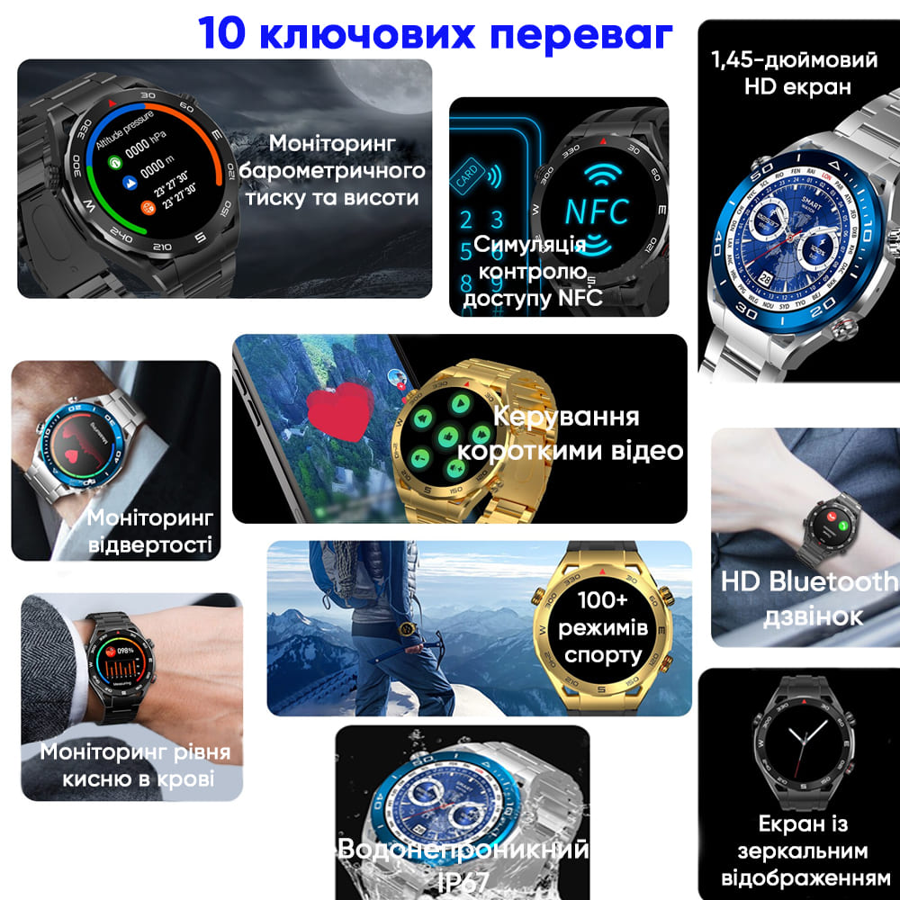 | Управление телефоном | Звонки и разговоры с часов / Синхронизация с приложением "Здоровье"/ Голосовое управление |