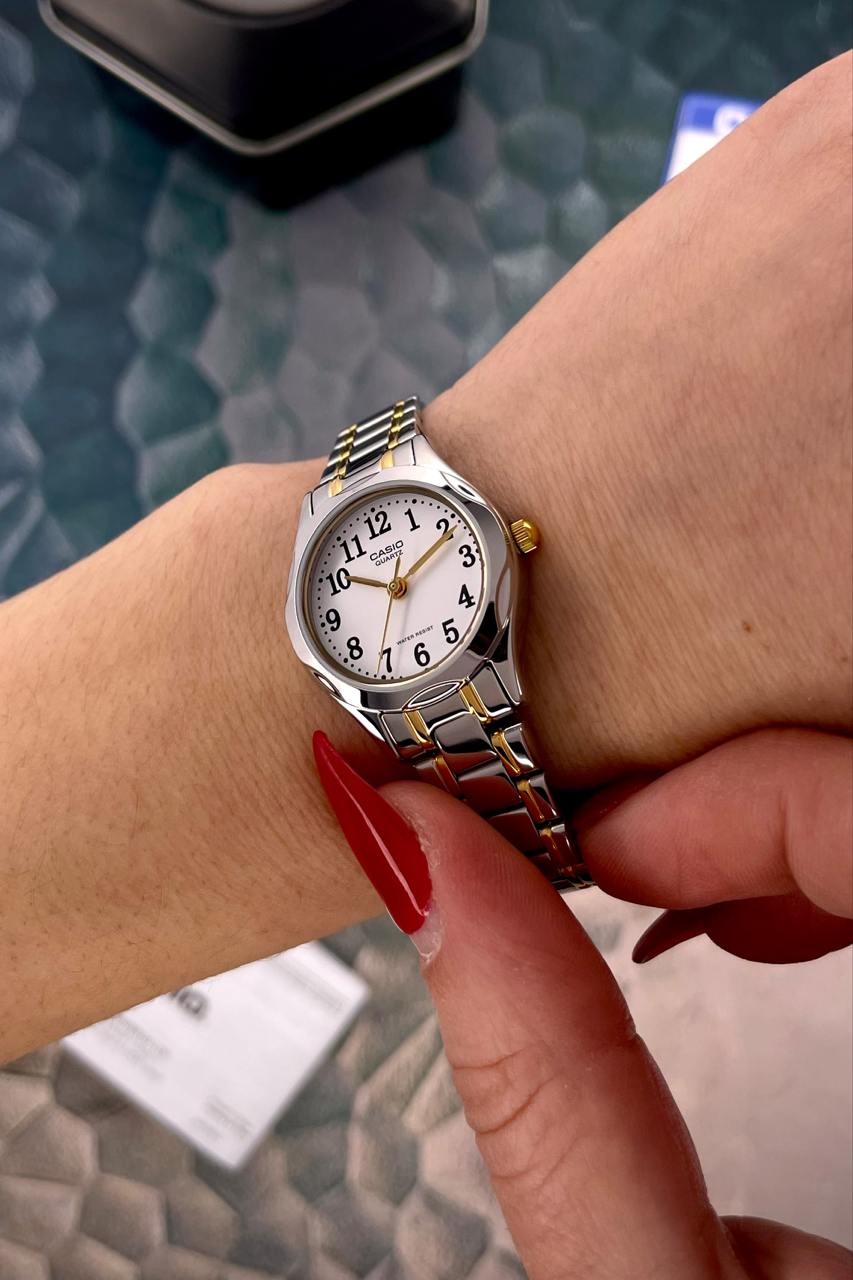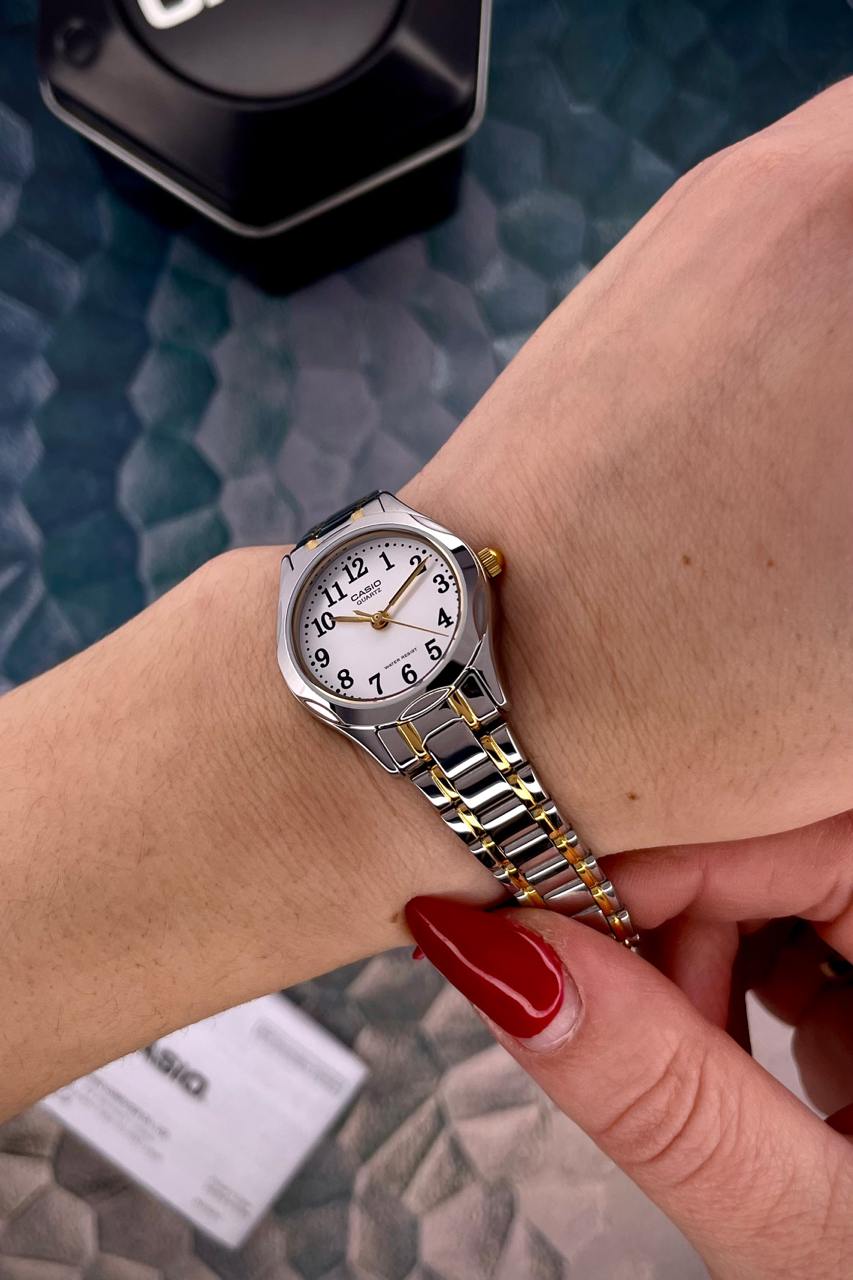 Представляем вам стильные женские часы Casio LTP-1275SG-7B , сочетающие в себе элегантность и функциональность. Эти классические часы с круглым корпусом изготовлены из высококачественной нержавеющей стали, что гарантирует долговечность и надежность. Диаметр корпуса составляет 28 мм, а вес – всего 55 г, что делает его комфортным для ежедневного ношения. Часы оснащены кварцевым механизмом и минеральным стеклом, что обеспечивает точность и стойкость к царапинам. Циферблат с арабскими цифрами имеет четкую индикацию часов, минут и секунд. Серебристый цвет корпуса и браслета придает ему современный вид, подходя для любого образа. Casio LTP-1275SG-7B имеет водонепроницаемость до 30 м, что позволяет не переживать за его целостность во время повседневных активностей. Вы сможете наслаждаться его элегантным дизайном и безупречным качеством в течение 24 месяцев, покрываемых гарантией от производителя. Добавить нотку классики в ваш стиль с часами Casio!